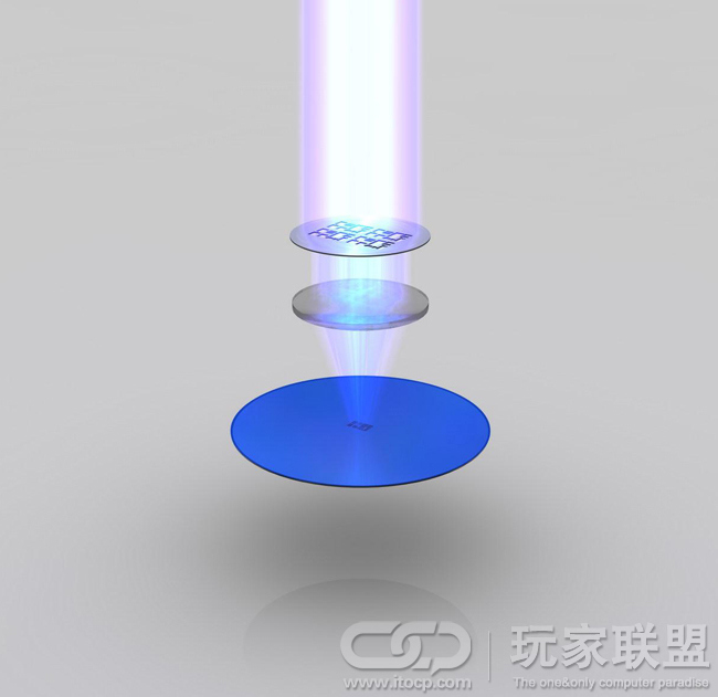 光刻:光刻膠層隨后透過掩模(Mask)被曝光在紫外線(UV)之下,變得可溶,期間發(fā)生的化學(xué)反應(yīng)類似按下機械相機快門那一刻膠片的變化。掩模上印著預(yù)先設(shè)計好的電路圖案,紫外線透過它照在光刻膠層上,就會形成微處理器的每一層電路圖案。一般來說,在晶圓上得到的電路圖案是掩模上圖案的四分之一。