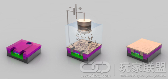 電鍍:在晶圓上電鍍一層硫酸銅,將銅離子沉淀到晶體管上。銅離子會從正極(陽極)走向負極(陰極)。